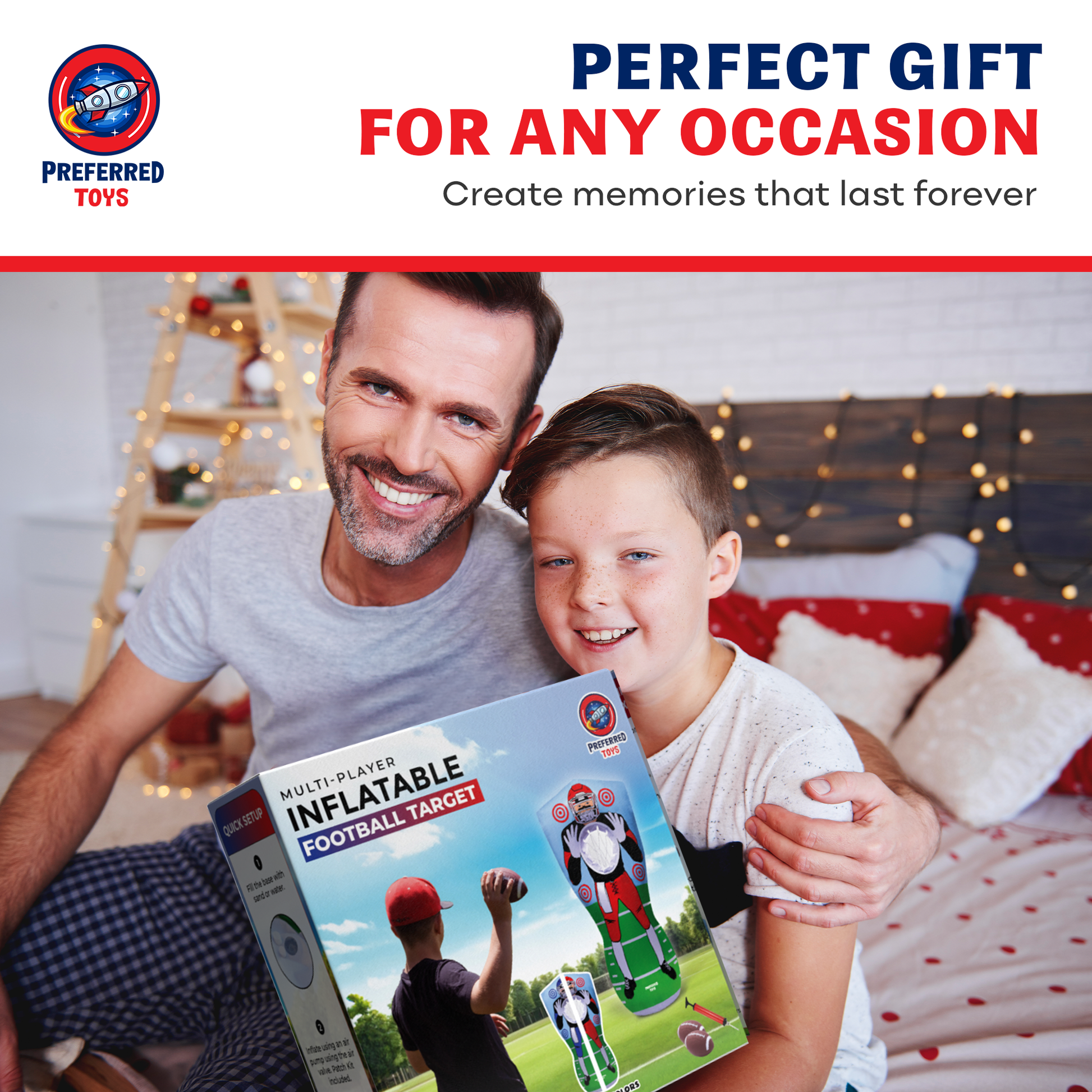 - PORTABLE FOOTBALL TOYS: Take the inflatable fun anywhere! Deflating for easy storage and inflating in minutes, this target is ideal for birthday parties, beach days, camping trips, or backyard barbecues