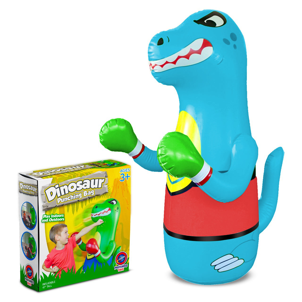 - Freestanding Punching Bag – Keep your child entertained with our amazing kids punching bag. This boxing bag for kids features an approximately 4 feet tall inflatable dinosaur. The base of this punching bag can be filled with either sand or water to keep it intact after getting punched or kicked energetically.
