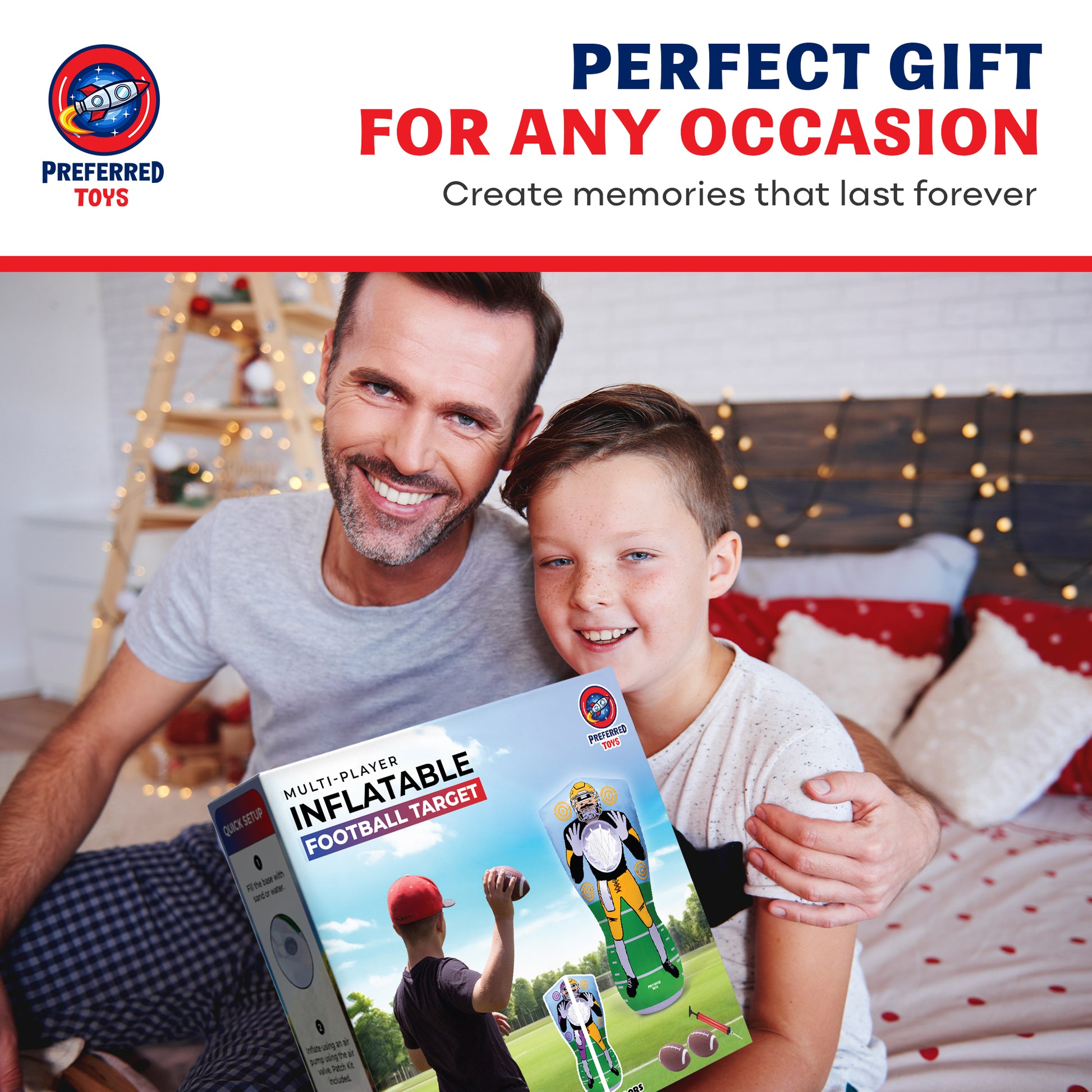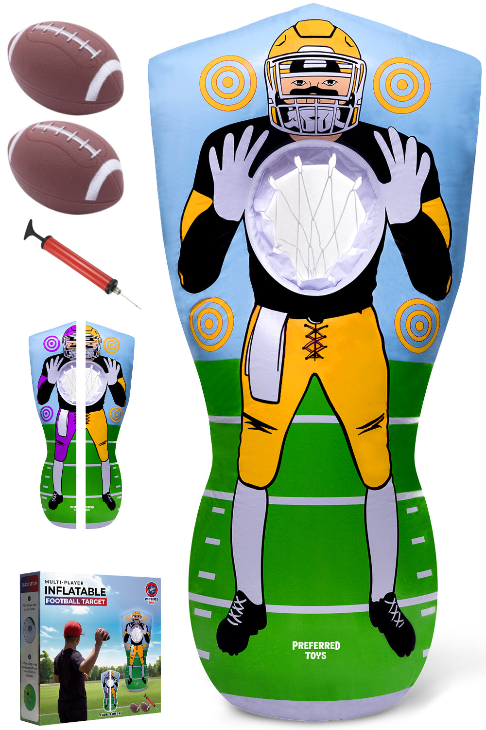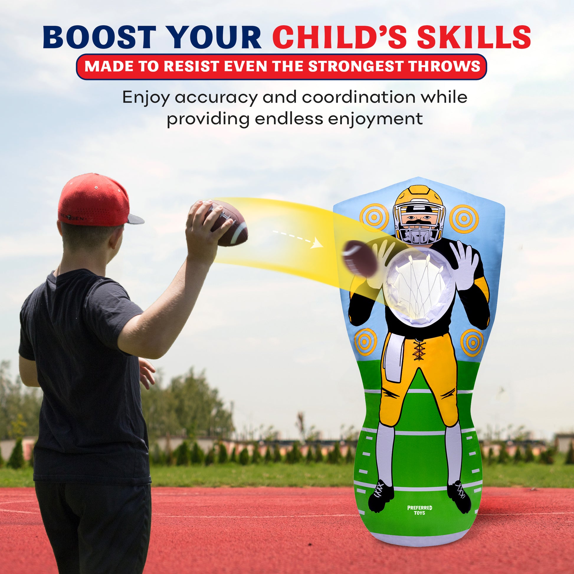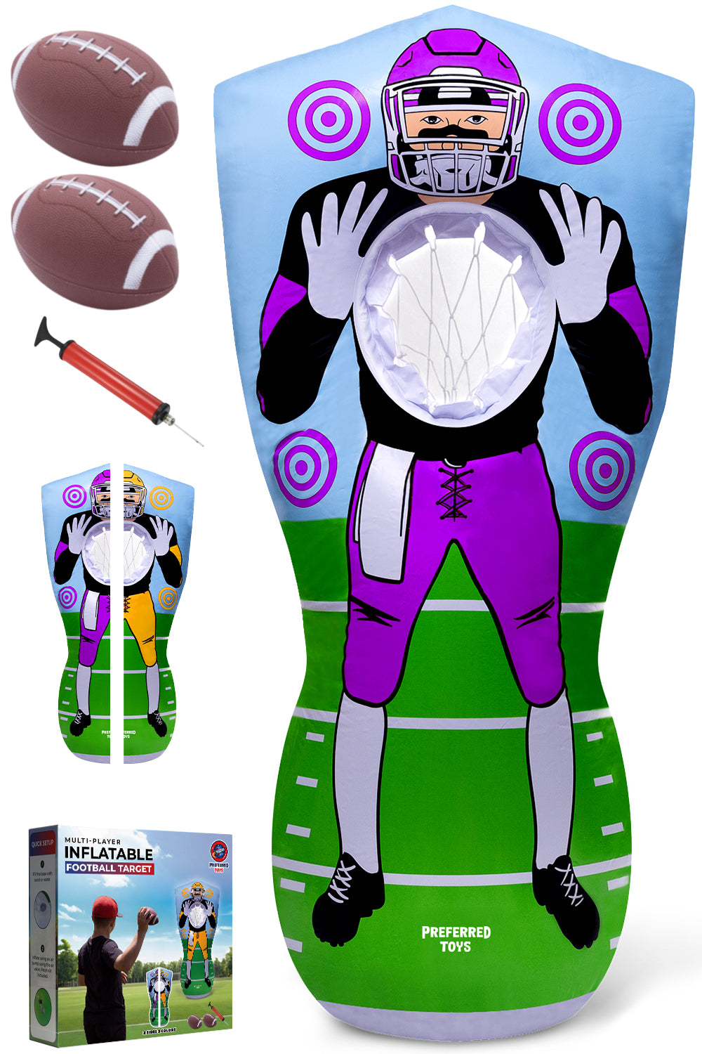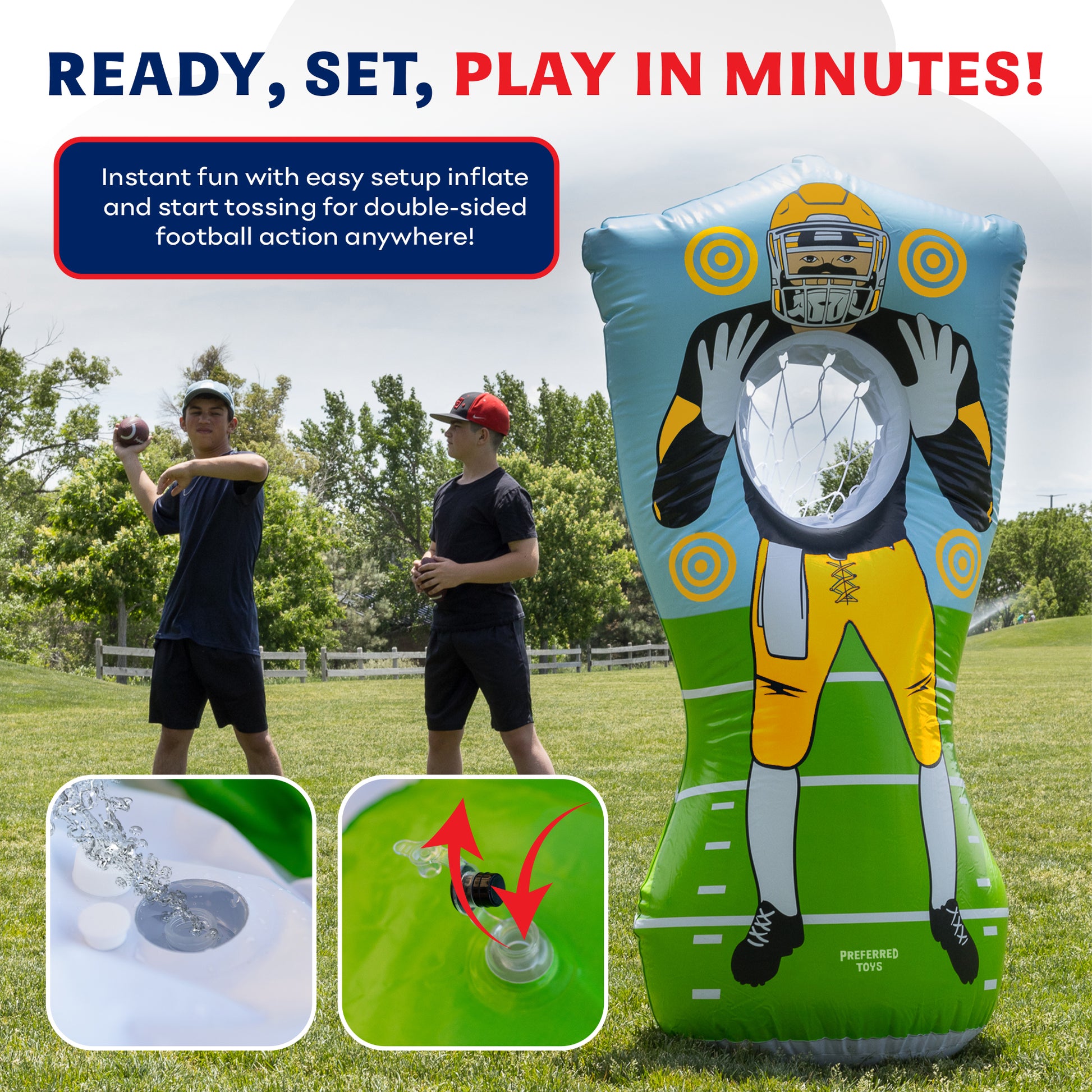 Preferred Toys Inflatable Football Target - Double-Sided Toss Football Training Game with Mini Footballs - Fun Kids Throwing Football Games for Indoors, Outdoors, Birthdays, Camping, Beach - 65 Inch